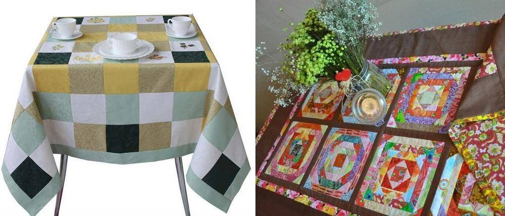 Лоскутная скатерть – модная вещь, идея которой эксплуатируется не в одной дизайнерской коллекции. Зачем же переплачивать, если из оставшихся лоскутков можно сделать такую вещь самому. Вдохновиться фото, найти нужные схемы (а схемы и вовсе могут не понадобиться, так как идея проста), или найти видео мастер-класс.