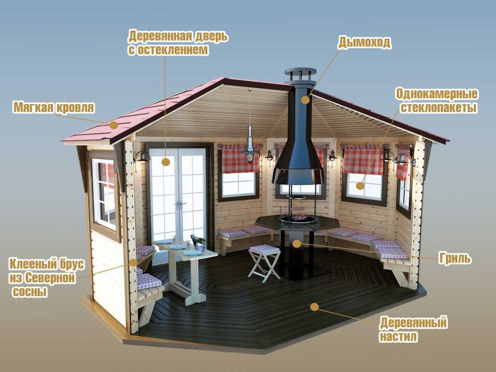 Проекты беседок с мангалом и барбекю для дачи:1 из 4