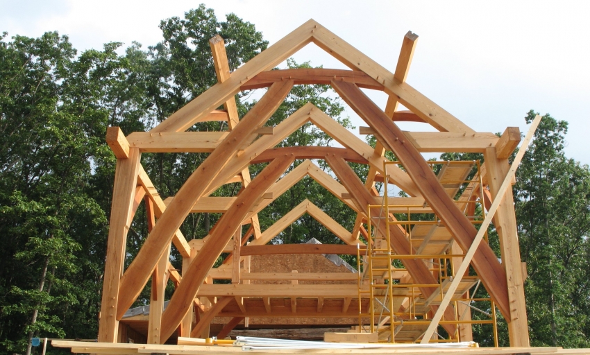 Стропила могут быть соединены при помощи мобильного строительного пресса