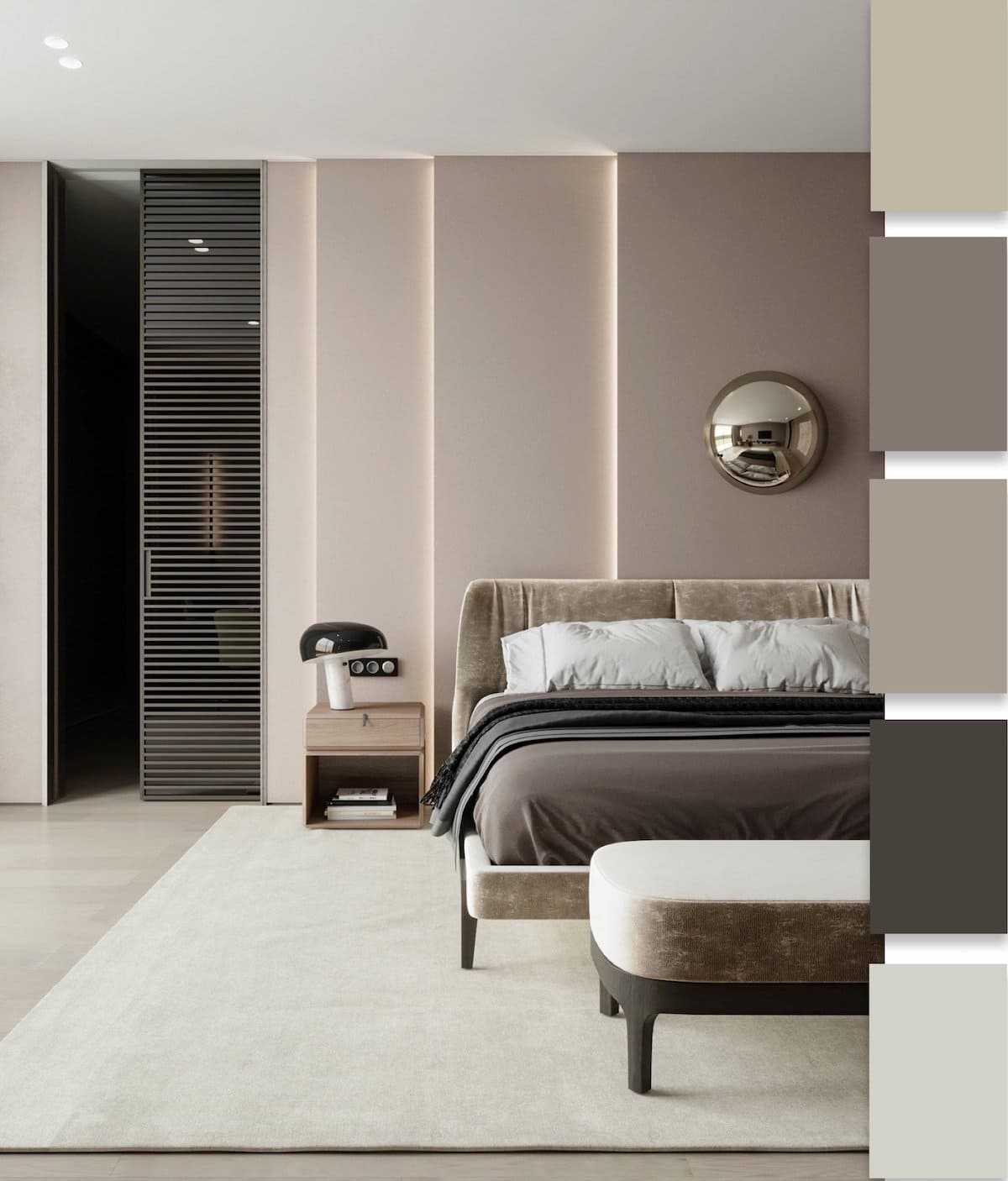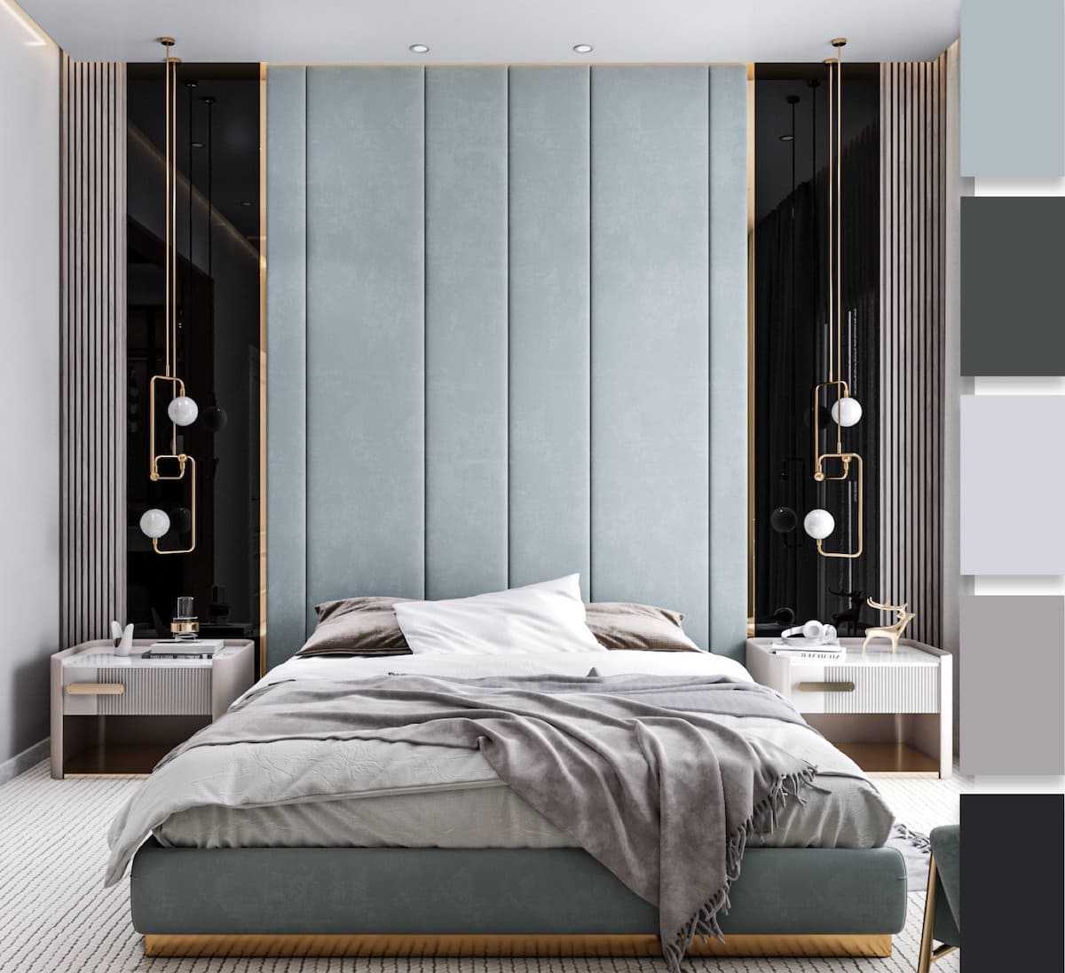 Переходим к оформлению спальной комнаты. Поскольку это помещение является личной территорией, то здесь можно делать все что вздумается, учитывая только свои вкусы и предпочтения. Цветовая гамма 2022 может варьироваться от черного до красного оттенка. Главное — личный комфорт. Но поскольку спальня является местом отдыха, то определенные рекомендации по выбору цветов существуют.