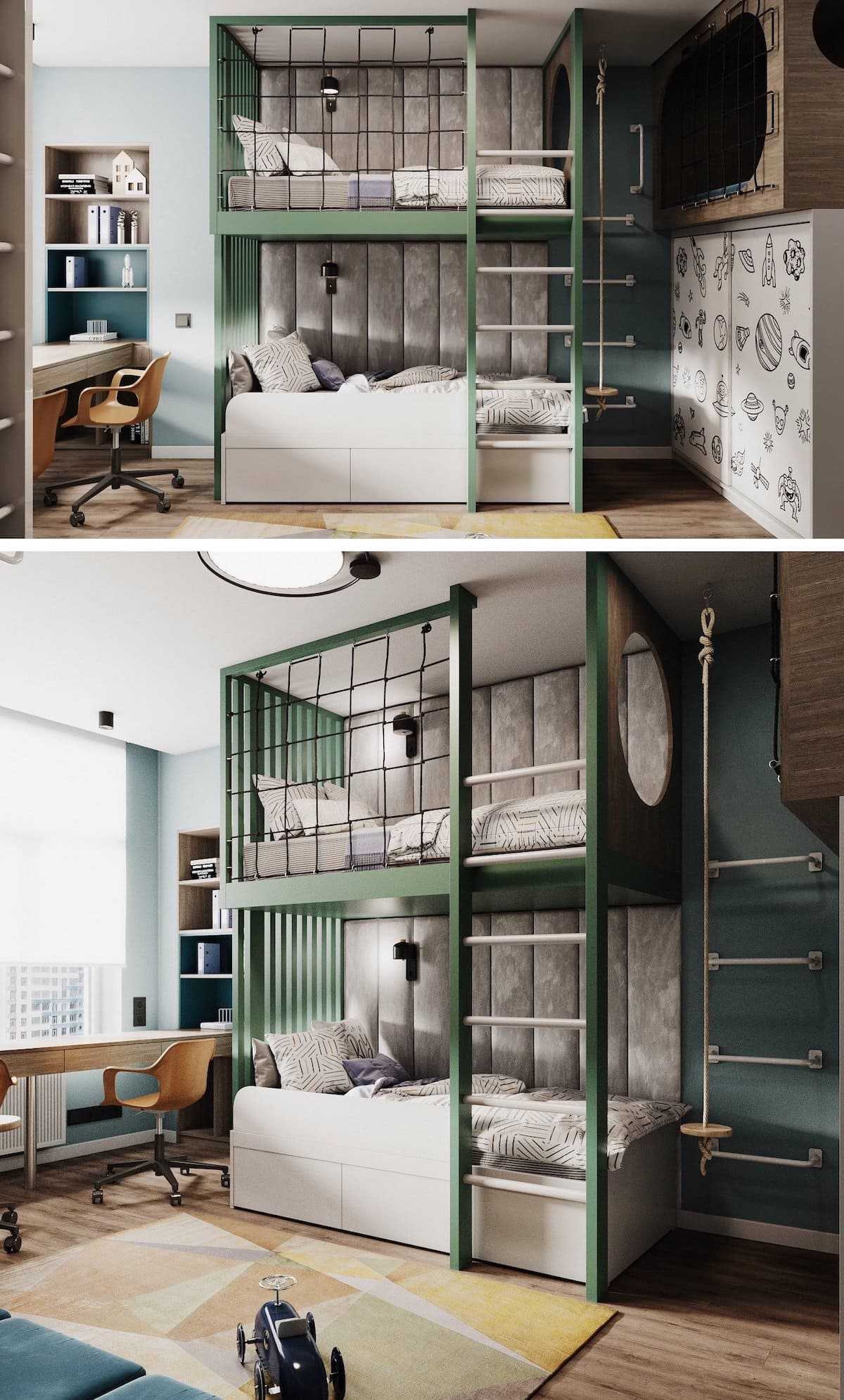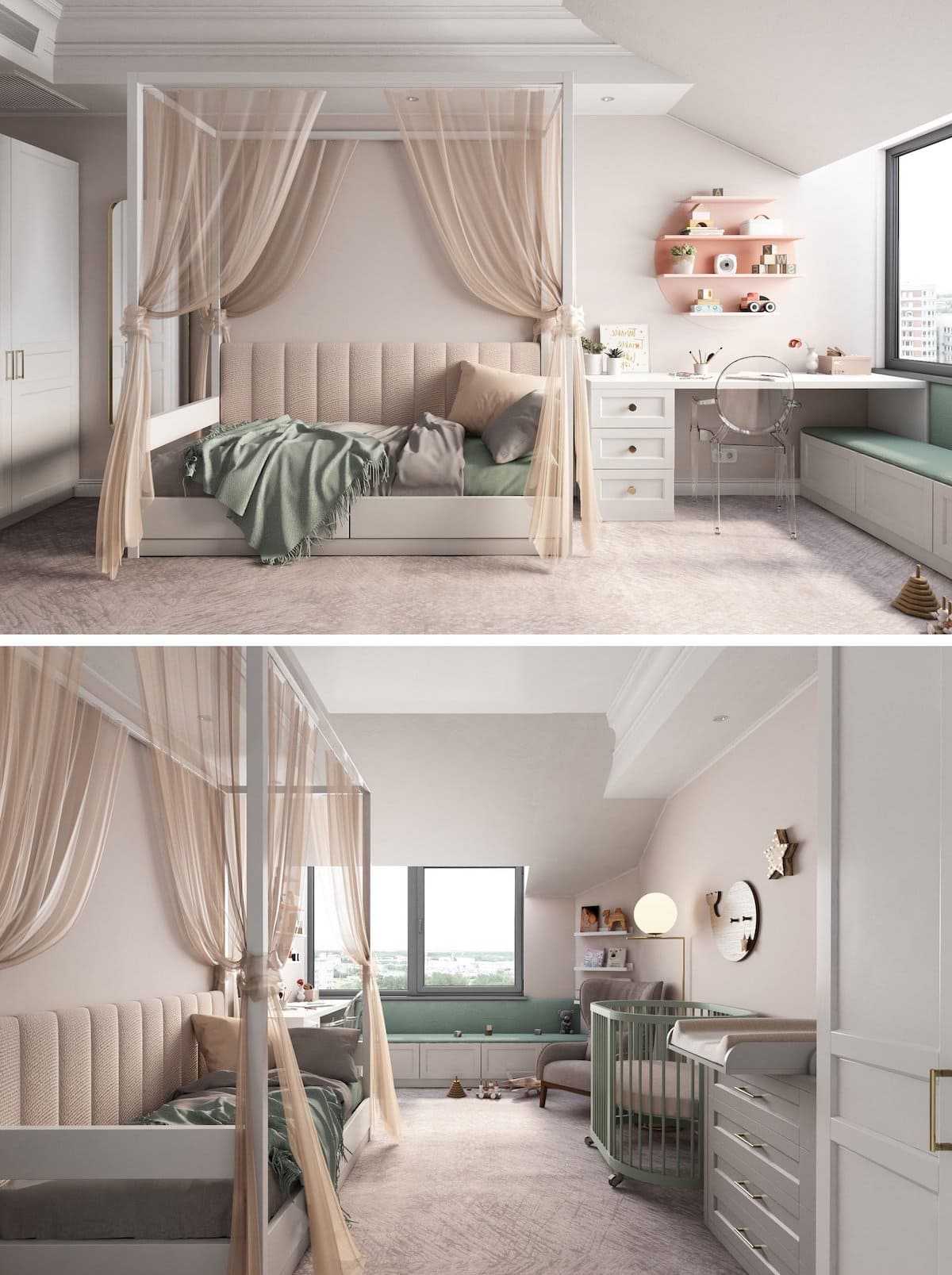 Важно учитывать нюансы комфортности, безопасности, деталировки. Вспомните себя в детстве, представьте, какой бы вы хотели видеть свою комнату и начинайте творить