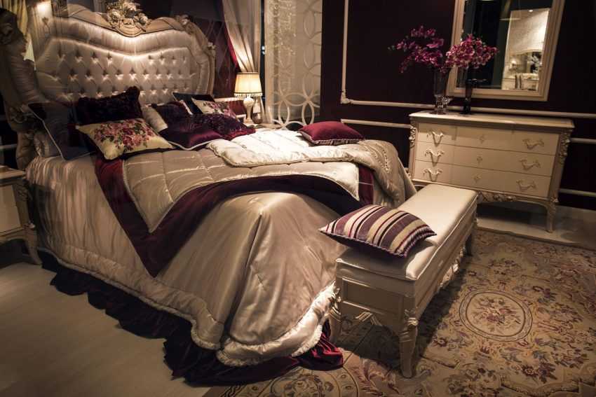 Идеальным вариантом для обстановки в классическом стиле будет кровать, обладающая массивностью, желательно с высоким изголовьем.