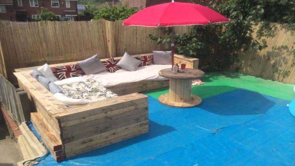 Если у вас имеется большое количество поддонов (материал можно приобрести за небольшую сумму в строительных магазинах), из них можно организовать полноценное место для отдыха, где вы сможете отдохнуть большой компанией. В этом случае от строительства беседки или открытой террасы и вовсе можно отказаться.