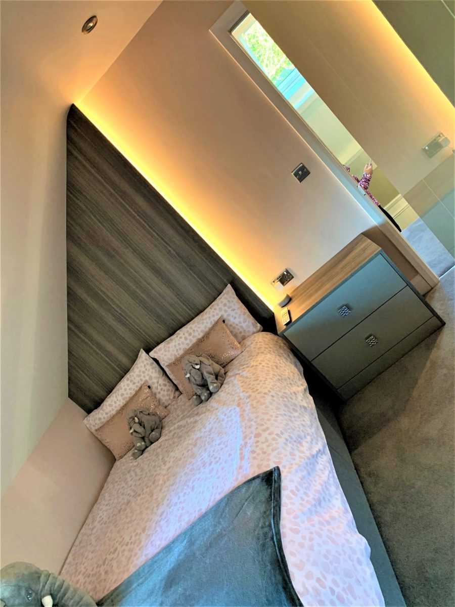 Сегодня все более популярным решением становится оснащение модульных гарнитуров встроенной подсветкой. Модульные спальни в современном стиле с правильным интегрированным светом не только практичны, но и создают больший уют, благодаря вариациям подсветки отдельных предметов.