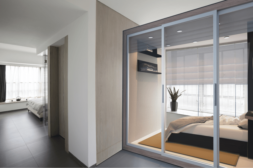Для зонирования маленькой комнаты можно использовать ширму, открытый стеллаж, занавески, раздвижную дверь. Их использование поможет отделить спальную зону как от рабочей зоны, так и от детской спальни, гостиной.