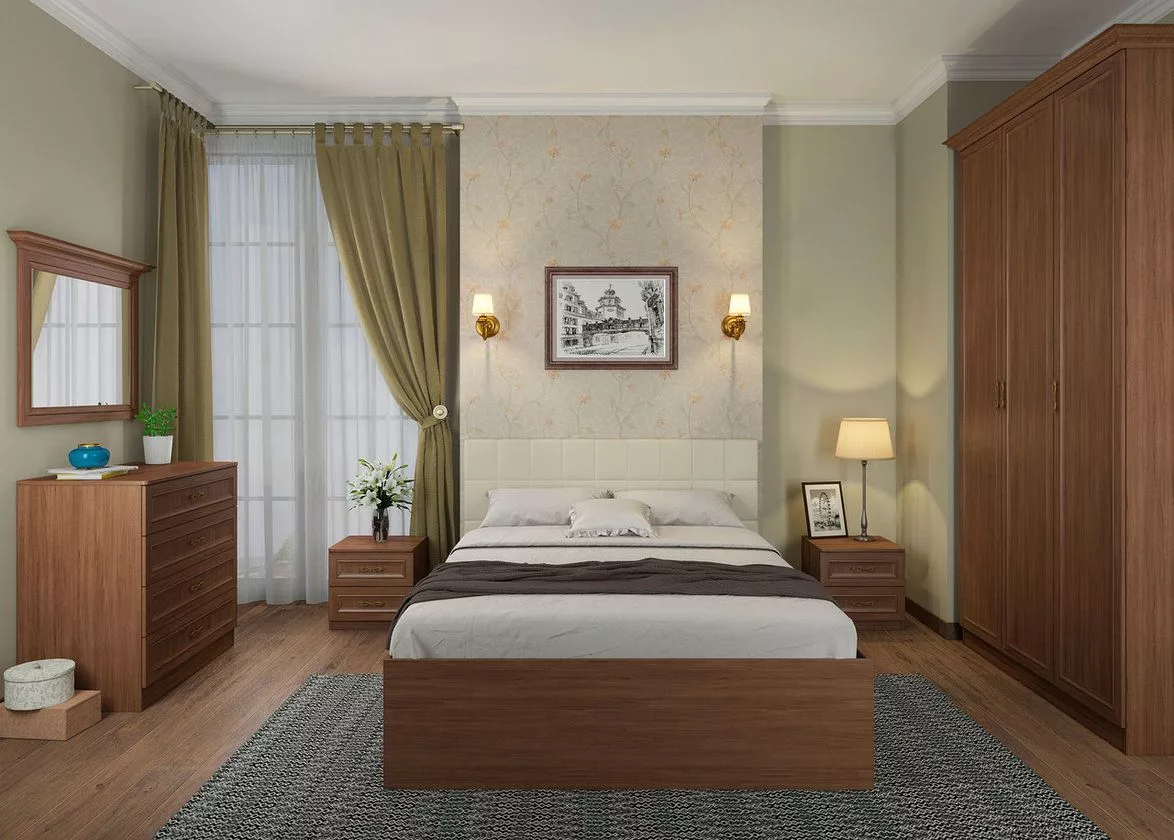 - Дерево. Натуральный материал, который характеризуется прочностью, экологичностью и долговечностью. Наборы деревянной мебели будут уместны в спальне классического направления. Единственный недостаток — высокая стоимость.