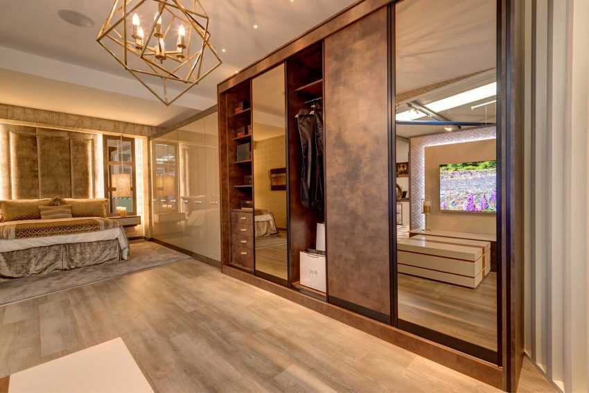 - традиционного шкафа-купе. Чаще всего он имеет большое зеркало. Плюс ко всему в такие шкафы встраивается кровать;