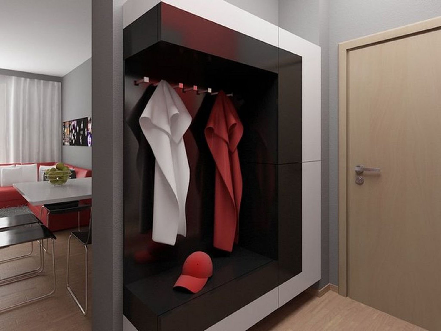 Если прихожая очень компактная, и даже самый миниатюрный шкаф в ней никак не поместится, то придется подбирать несколько самых важных предметов отдельно друг от друга и пытаться размещать в существующем пространстве.