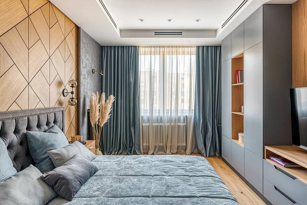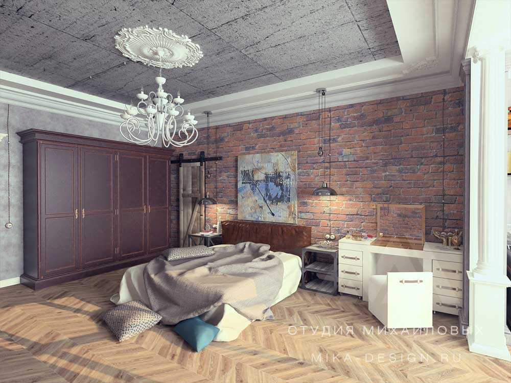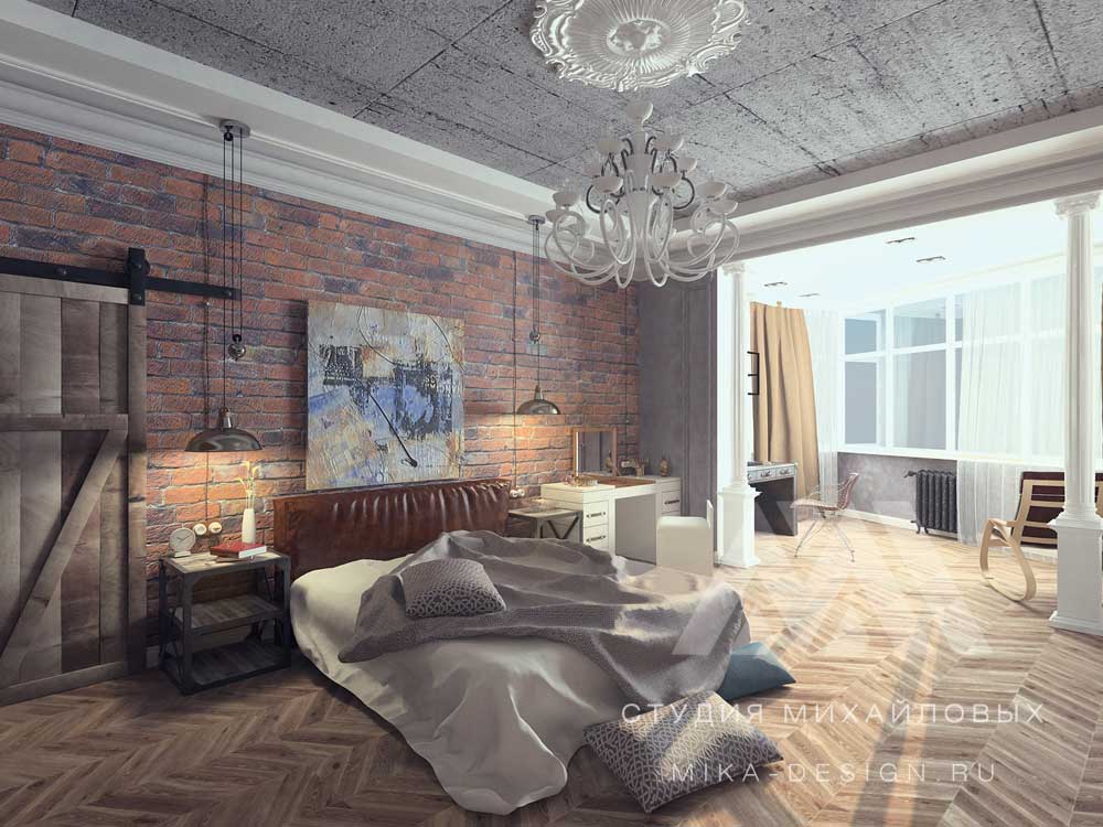 Это единственное место, которое может быть огорожено посредством мобильной ширмы или непрозрачной перегородки, для этой цели может быть использован и небольшой комод. Как правило, при оформлении спальни стоит придерживаться тенденций минимализма, также следует помнить, что спальня лофт не гарантирует уединенности.