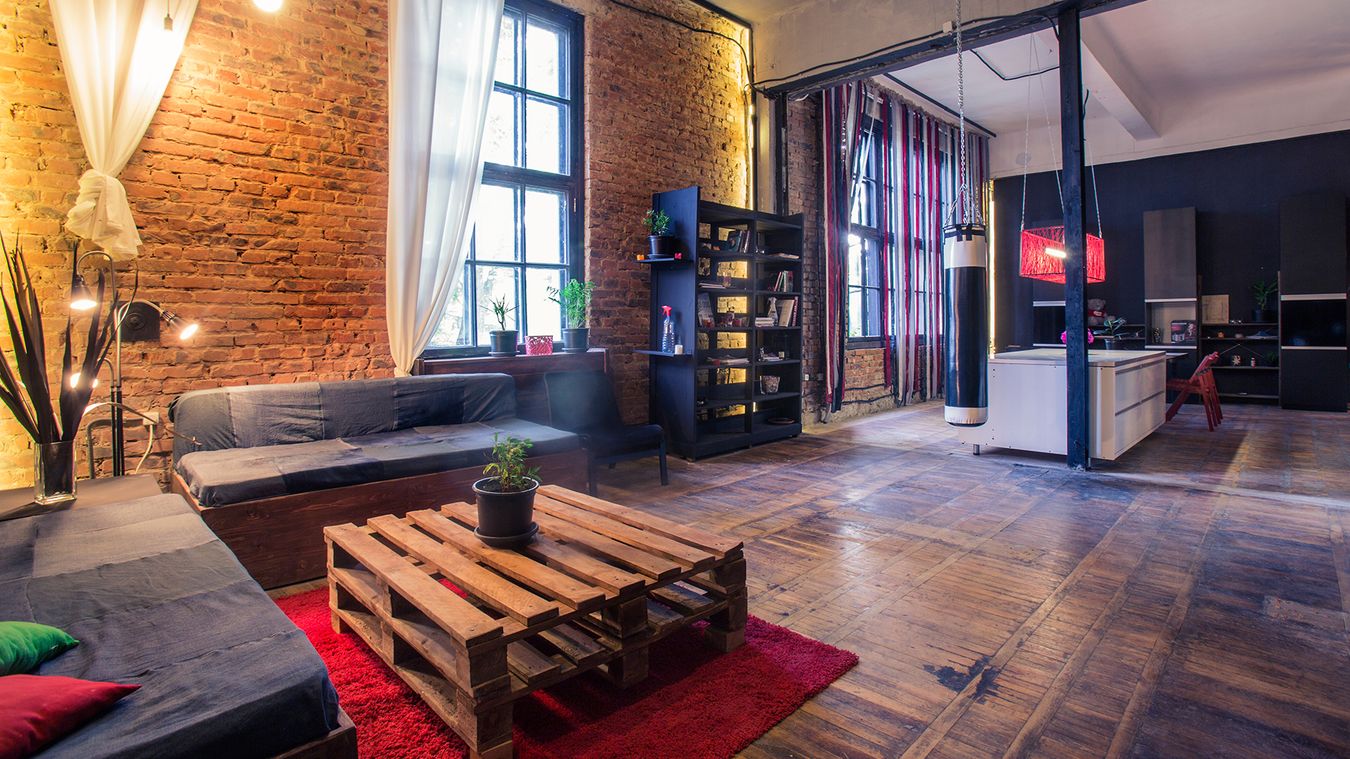 Главное правило отделки лофта – никакой отделки! Основной задачей становится, наоборот, устранение всего лишнего. Убираем межкомнатные перегородки, сдираем штукатурку до кирпича, открываем инженерные коммуникации и балки. Но, конечно, лофт подразумевает не только разрушение.