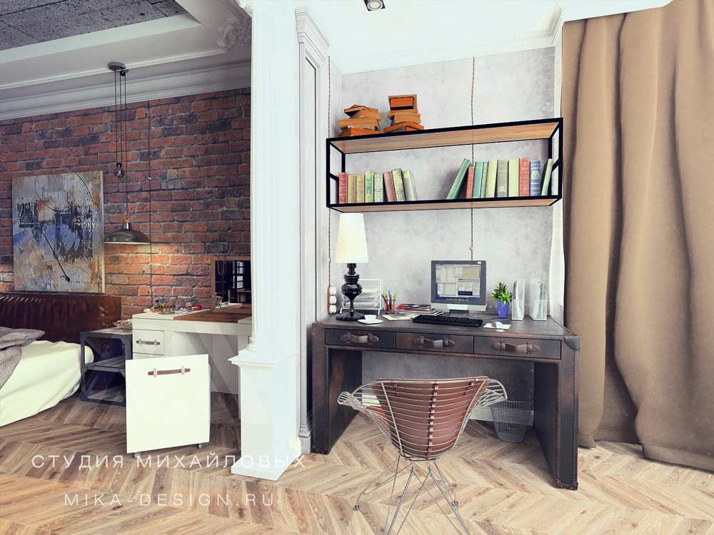 Лофт – это максимум свободного пространства, поэтому он идеально подходит для квартир-студий. Мебель должна быть тщательно продумана. Выбирать следует только самое необходимое, чтобы не было загромождения.