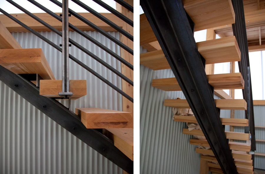 Часто можно встретить конструкции лестниц, которые крепятся на больцах. Альтернативным способом крепления ступеней могут выступить несущие балки. С их использованием можно закрепить проступи и подступенки.