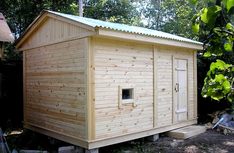 И последнее, о чем стоит упомянуть, это вариант бани из дерева, но только не брусовая или срубовая, а каркасная. Делается она проще и быстрее, поскольку используются доски из которых собирается каркас. Отсюда и название.