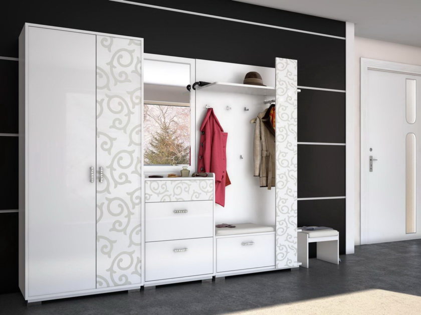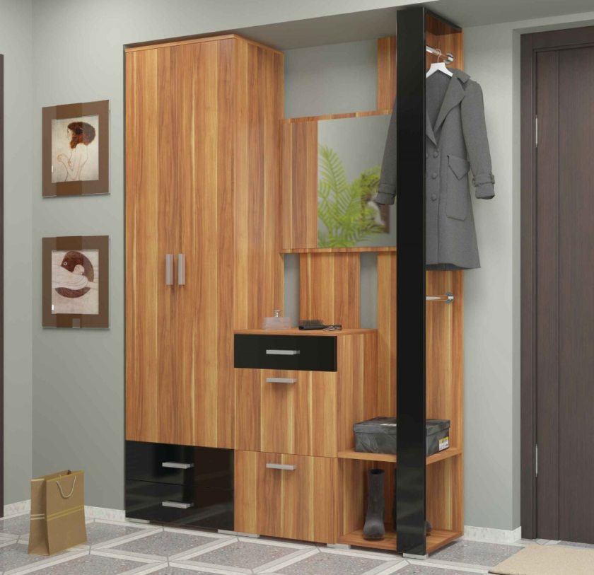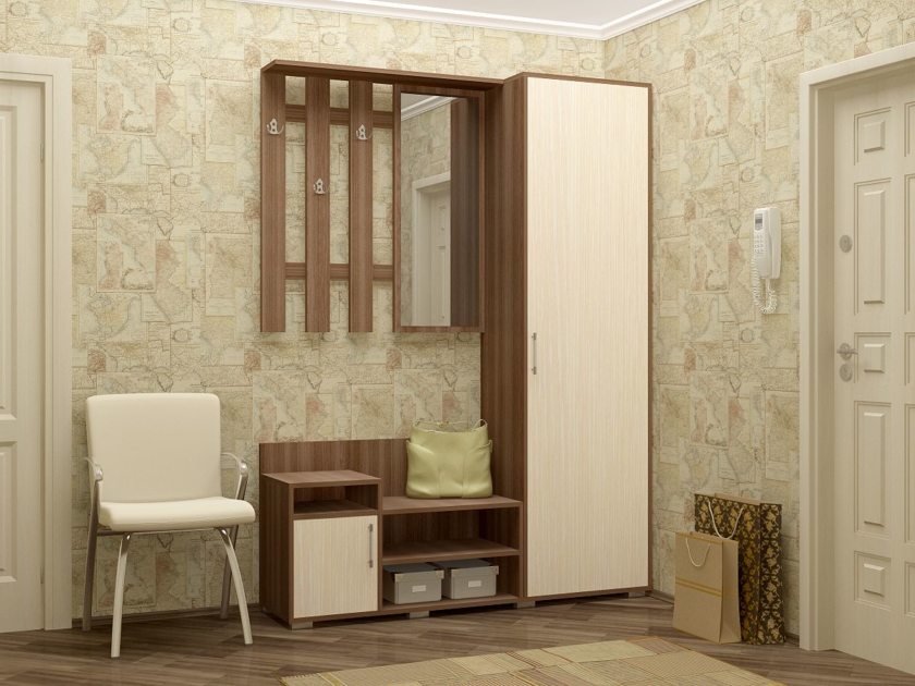 Малогабаритная прихожая должна быть функциональной и вместительной, поэтому нужно выбирать модель, включающую следующие элементы:
