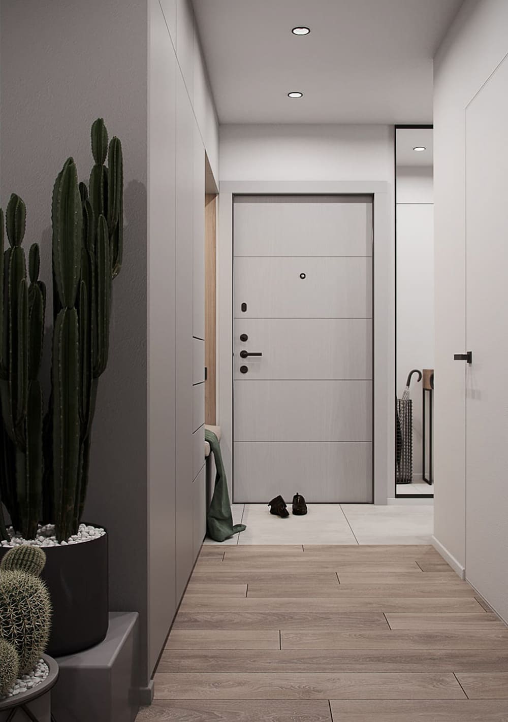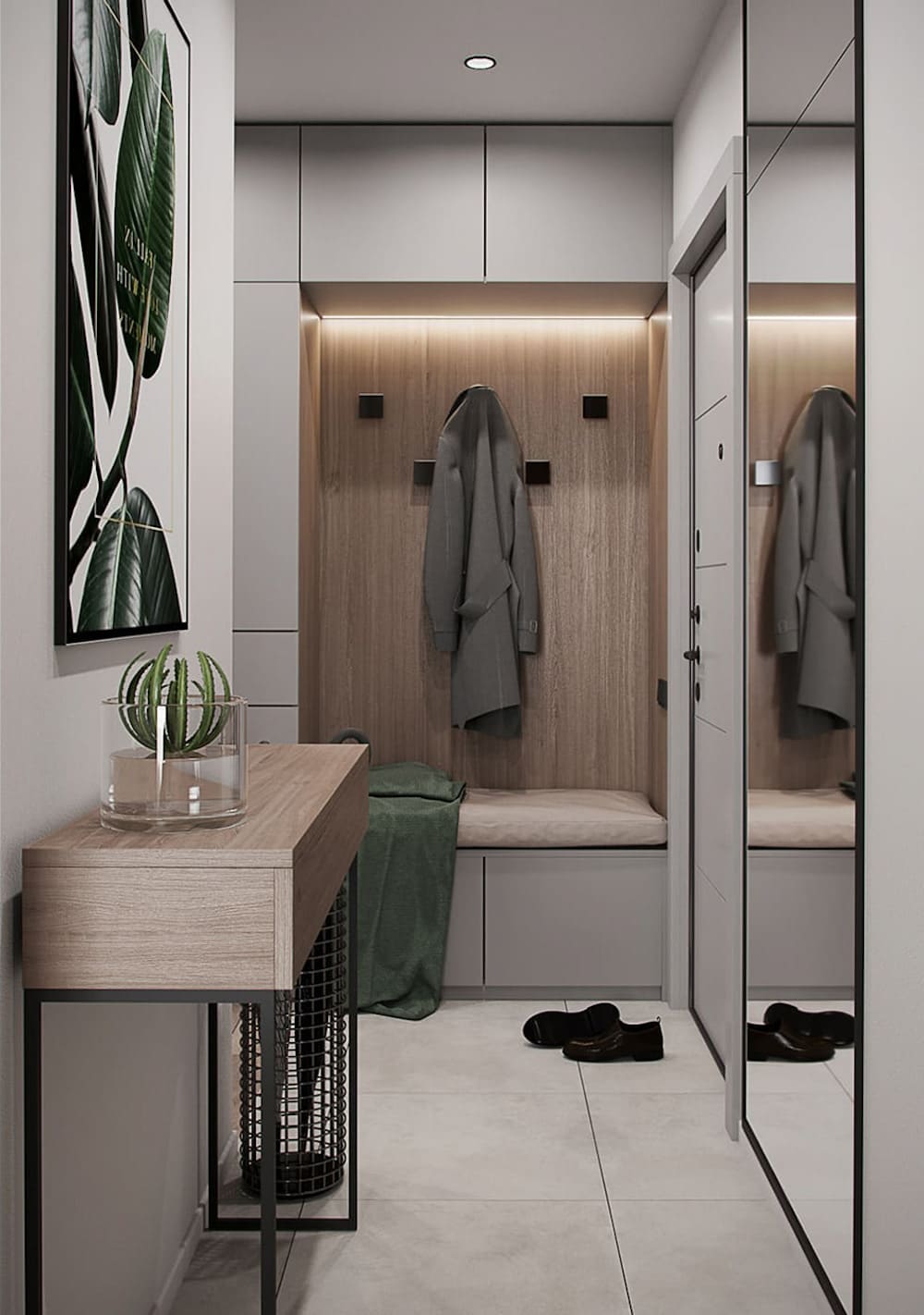 Чем меньше вещей находится на виду, тем эффектней выглядит обстановка в прихожей
