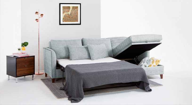 - Диван-кровать. Решение для малогабаритных квартир. В разложенном виде конструкция превращается в полноценное место для сна.