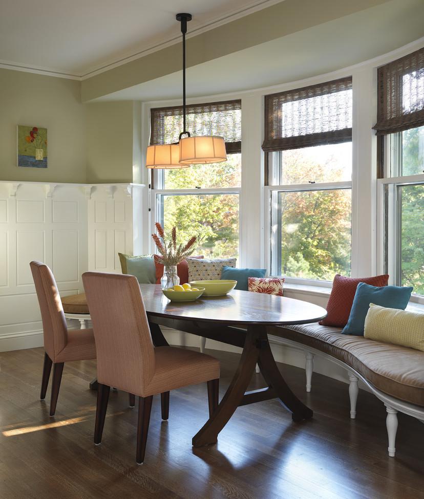 Эркерный диван для кухни отличается от дивана для гостиной обивкой. Отличным решением для этой многофункциональной комнаты (речь идет о кухне) станет диван со съемными чехлами. Это одновременно и практично и разнообразно для интерьера. Чехлы могут быть различными в цветовом исполнении и эксплуатироваться в зависимости от события или по настроению. Кроме того, их легко поменять, сменив на новые в случае полного износа. При этом мебель останется целой и невредимой.