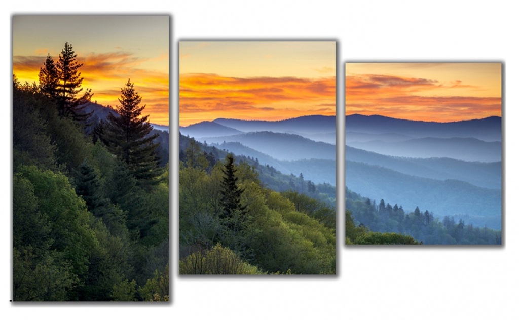 - Реже выбирают горизонтальные части картины, для визуального расширения пространства используют вертикальные модули, но которые собираются в сюжет, расположенный по горизонтали.