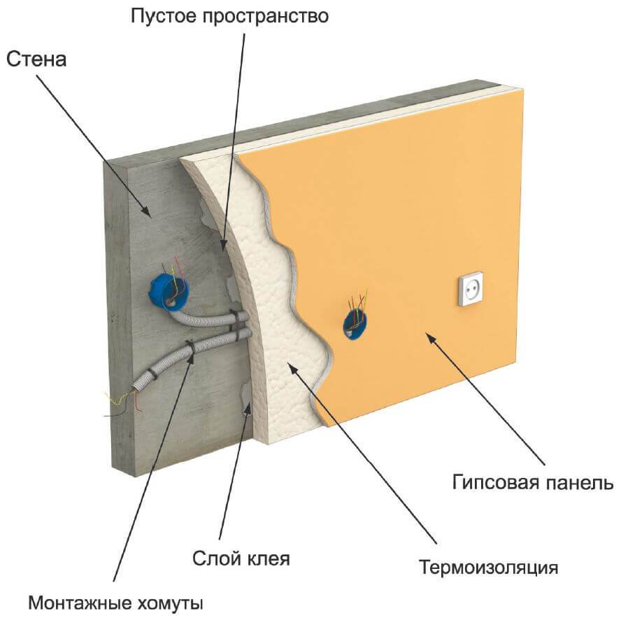 Не стоит забывать об электропроводке и прокладке других коммуникаций. При бескаркасном способе монтажа нужно заранее сделать борозды и выполнить устройство сетей до того, как будет произведена отделка стен.