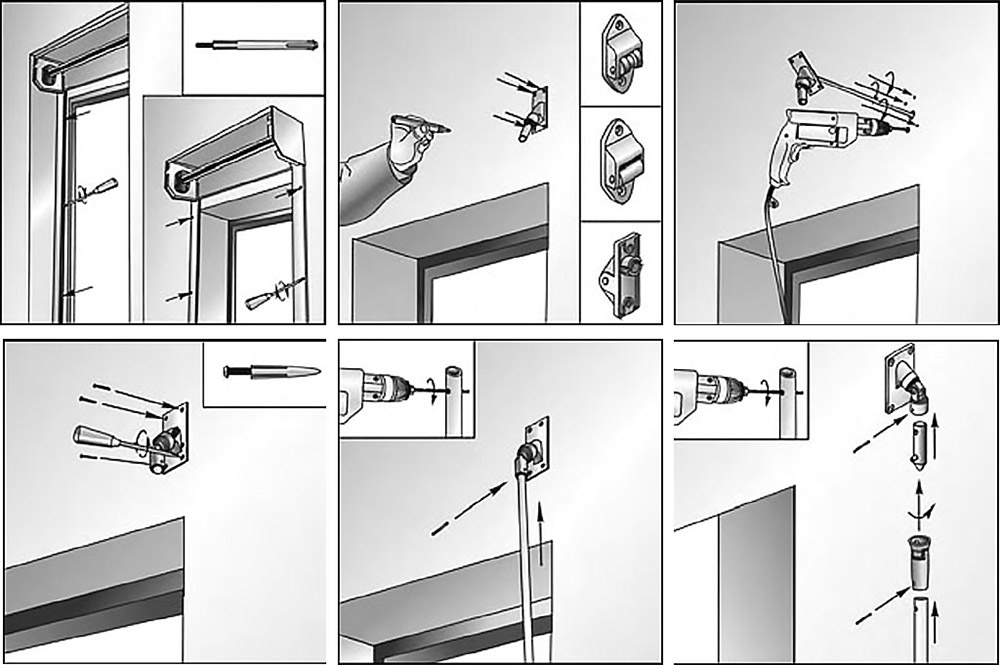 Допустимое отклонение крайних точек направляющих не должно превышать 2 мм. Для того чтобы вывести наружу управляющие элементы конструкции, в корпусе проделываются отверстия в месте, где должен быть расположен тяговый механизм. При этом для механизма кардана отверстие должно иметь диаметр 20 мм, для шнуров ручного управления или кабеля электромотора размер отверстия должен быть 12 мм, а под ленточное управление сверлятся отверстия диаметром 16 мм.