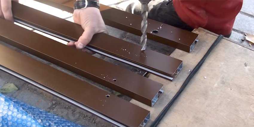 2. Сверлом 8 мм рассверлить направляющие по разметке. Сверло проходит профиль насквозь.