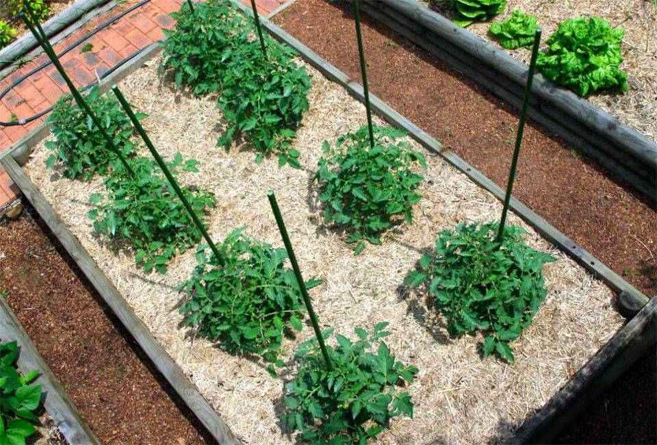 Помидоры в теплицу из поликарбоната можно высаживать рано, если предварительно сделать утеплённую почву. Для этого весной в теплице выкапываются траншеи шириной и глубиной равной 25-30 сантиметрам. Траншеи наполняются подготовленными с осени сухими листьями, сеном или навозом. Сверху набрасывается почва и уплотняется.