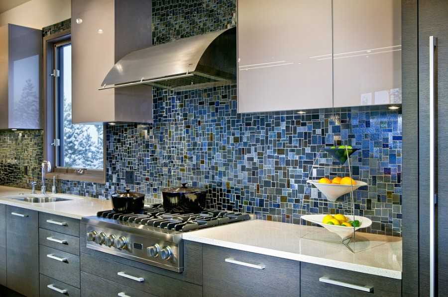 - Для отделки фартука кухни нежелательно использование большого количества блестящих элементов: во-первых, они будут быстро загрязняться, а, во-вторых, создаваемые ими блики будут мешать хозяйке. Следует выбирать материал, устойчивый к сырости и максимально простой в уходе.