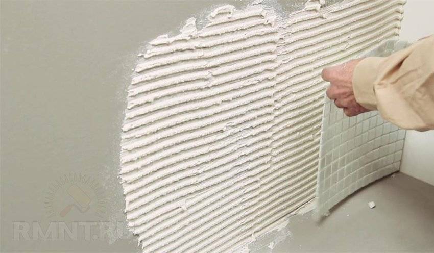 Клей, выступивший на поверхность мозаики, следует сразу же удалить. Мозаичная плитка на сетке приклеивается сеткой к стене. А мозаичная плитка на бумажной основе — бумагой вверх.