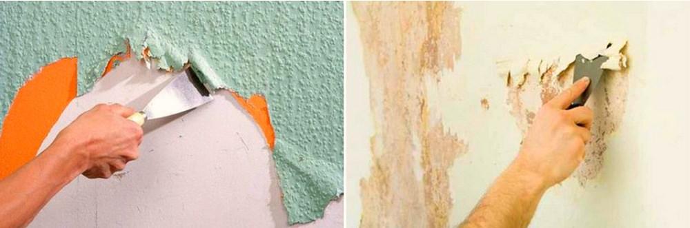 Бывает, что хозяева не уверены, какой вид краски использовался ранее. Определить это достаточно просто: надо шпателем или скребком попытаться очистить небольшой участок стены.