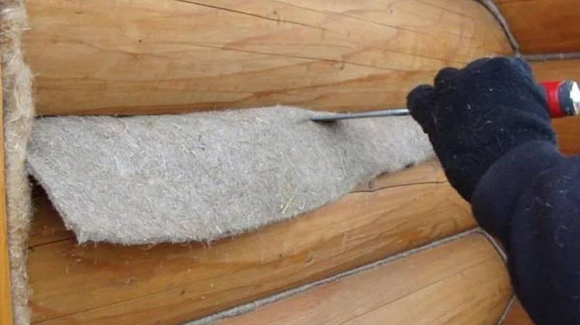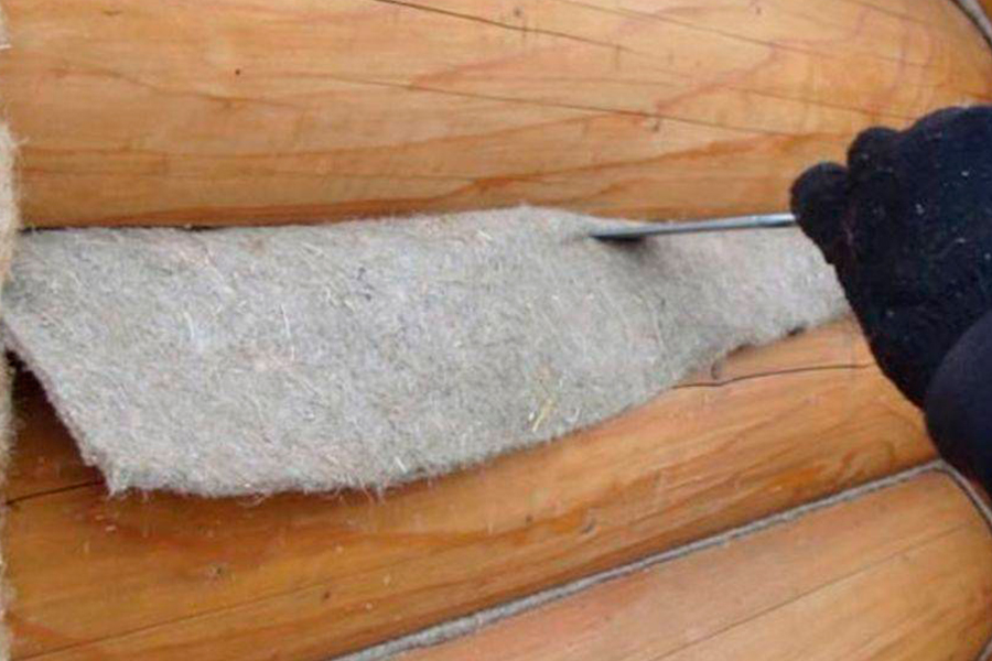 Для утепления и уплотнения швов в бревенчатых стенах применяется природный материал (мох, джут, пакля и др.) и современные искусственные пенополиуритановые, пенополиэтиленовые, минераловатные и другие межвенцовые утеплители.