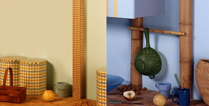 В такой многофункциональный элемент можно трансформировать любую горизонтальную трубу, если она проходит относительно близко от основного места готовки. Для реализации этого способа декорирования необходимо тщательно зачистить поверхность, после чего нанести бронзовую или серебристую краску, придающую ей блестящей вид.