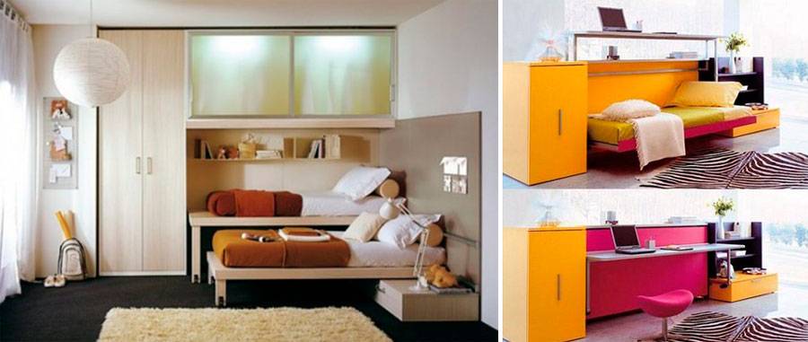 Проблема многих современных квартир в недостатке свободного пространства, и тогда приходится как-то хитрить и изощряться. Но производители уже давно идут навстречу владельцам скромных квадратных метров и разрабатывают удобные, функциональные и практичные решения. Часто одна комната выполняет не только функцию спальни, но и сочетает в себе, например, кабинет, детскую, гостиную и т.д. И тогда нужно использовать мебель-трансформер, многофункциональные предметы мебели. Конечно же, сейчас многие подумали о диванах, но речь пойдет не только о них, ведь и других решений масса. Так, можно в комнате обустроить небольшой подиум, под которым спрятать кровать: днем будет куча свободного пространства, а на подиуме можно разместить даже рабочую зону, поставить шкаф-купе. Ночью же кровать выдвигается, образуя замечательное комфортное спальное место. Кроме того, кровать может прятаться в специальный шкаф и днем также не занимать места.