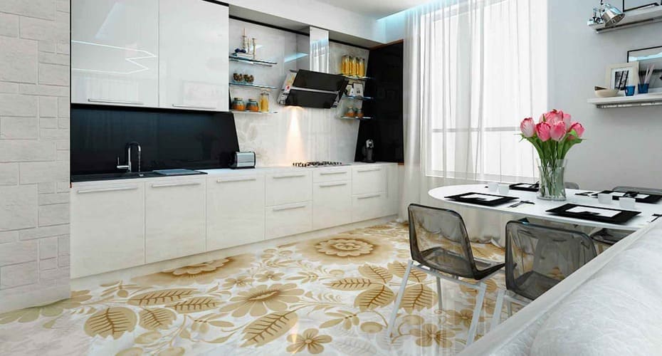 - Привлекательный внешний вид. Смесь равномерно растекается по поверхности, создавая бесшовное глянцевое покрытие. Это помогает создать идеально ровный фарфоровый пол.