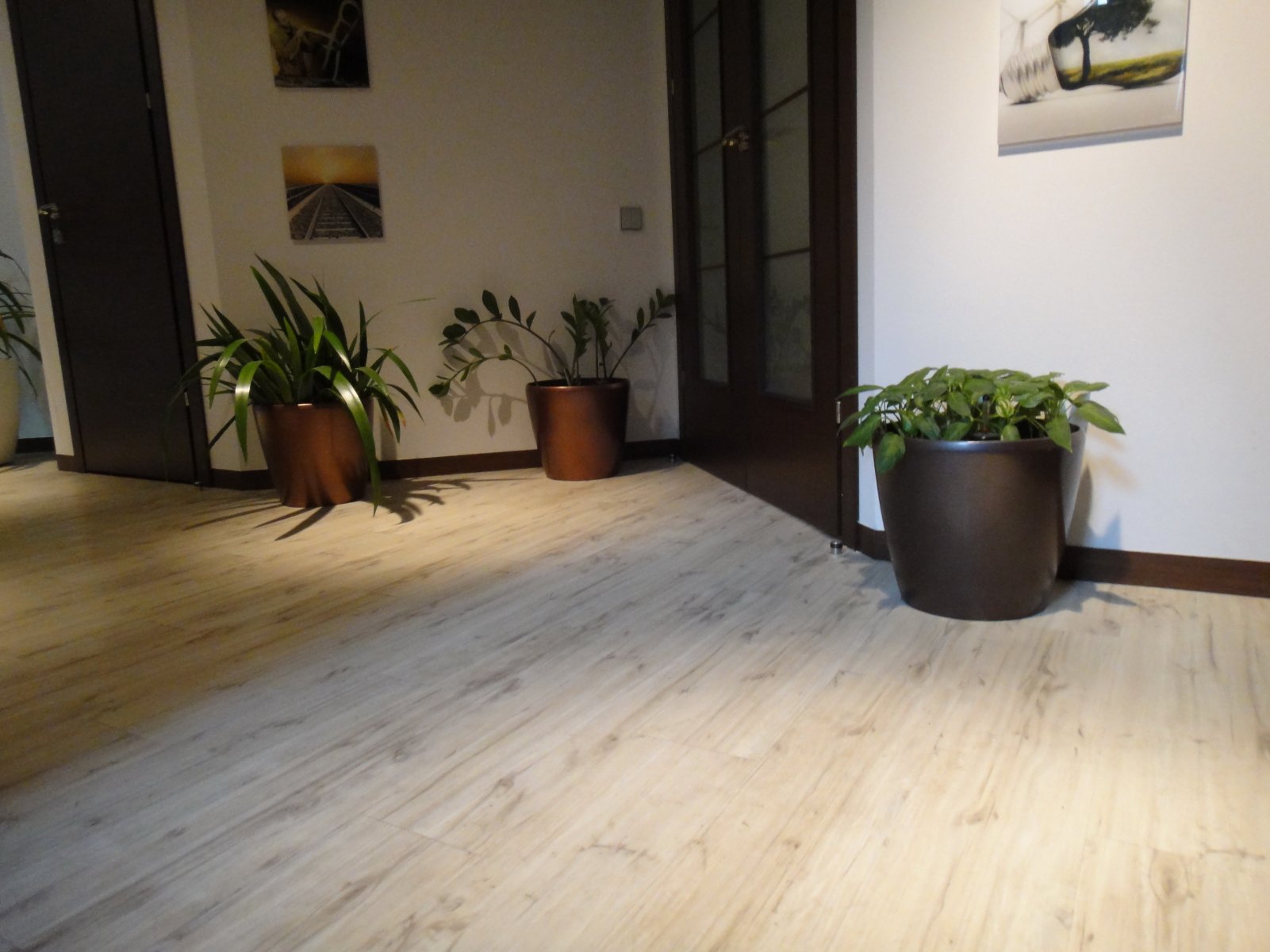 Наиболее популярный и выигрышный вариант для прихожей, она гармонирует с любым оформлением стен. На ней не так заметны царапины и грязь.