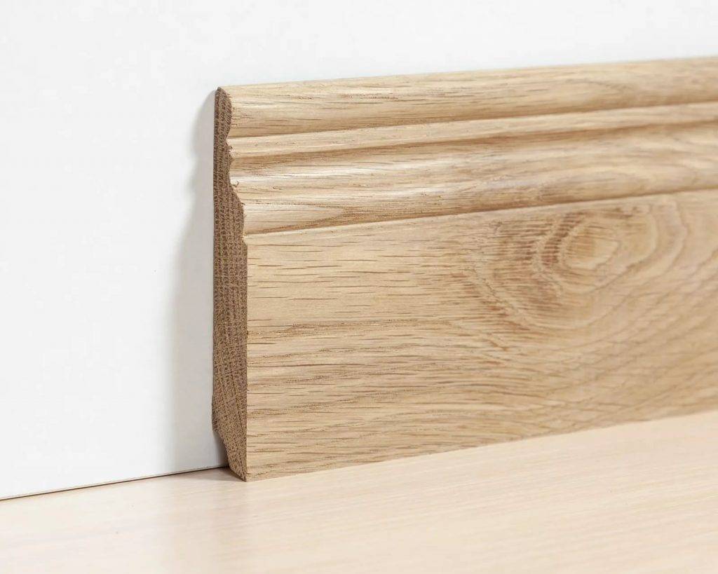 Плинтус из твёрдых пород древесины – бука, тика, дуба и других разновидностей может весить до 2 кг.