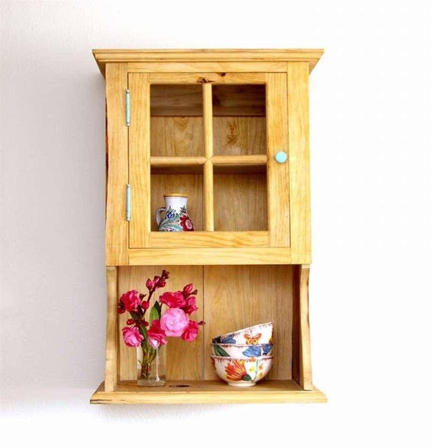Этот навесной шкаф полностью собран с помощью клея и столярных изделий. Единственные места, где используются винты, – это на задней панели и на дверных петлях.