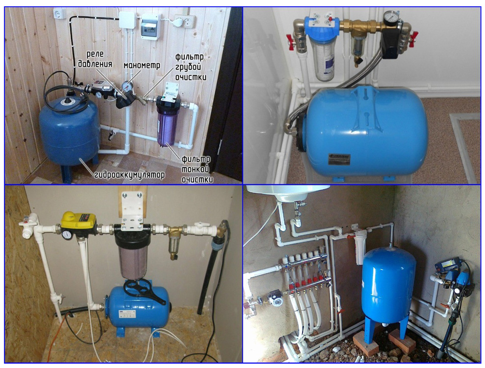 В одном отсеке емкости находится вода, другой отсек заполнен воздухом. Для регулировки напора воды из насоса перед гидроаккумулятором устанавливают реле давления. Кроме того нужно сдать воду в лабораторию для проведения соответствующей экспертизы, затем продумать систему очистки воды и приобрести для этой цели фильтры.