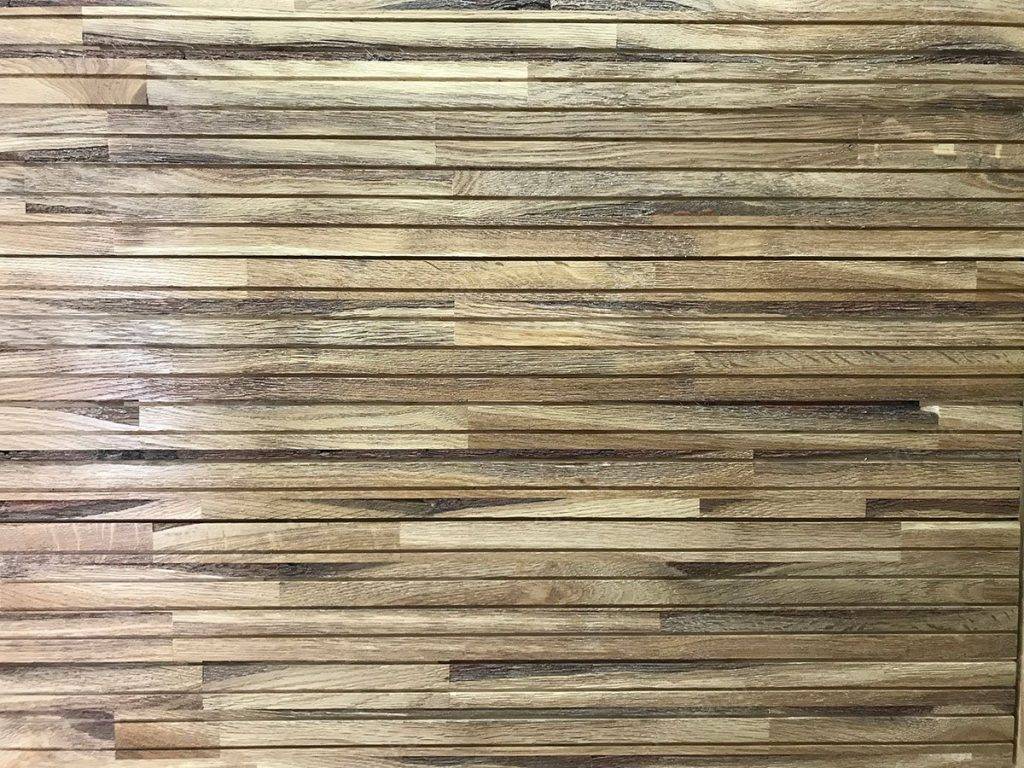 Длина реечной панели начинается от 2.4 м. Для оформления стыков используют стыковочные планки. Сами панели могут быть выполнены под древесину, камень, керамическую плитку. На ПВХ-панелях имитация древесины выходит неправдоподобно, поэтому даже с большого расстояния видно, что перед вами пластик. Древесный рельеф хорошо передают МДФ-панели, немного им уступают рейки из ДСП.
