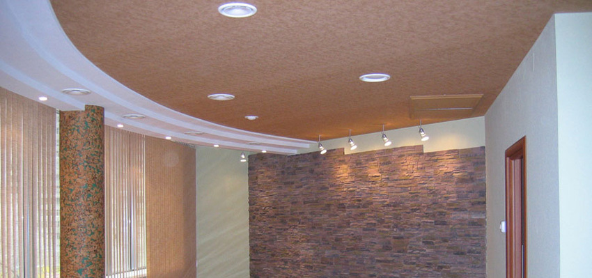 Такие потолочные поверхности можно красить в любой цвет, облагородить плиткой или обоями с тесненной фактурой.