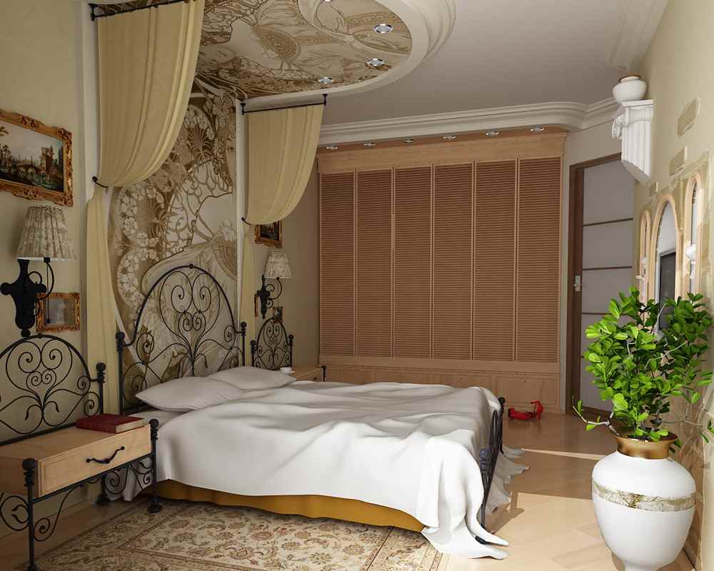 Дизайн спальни с натяжными потолками