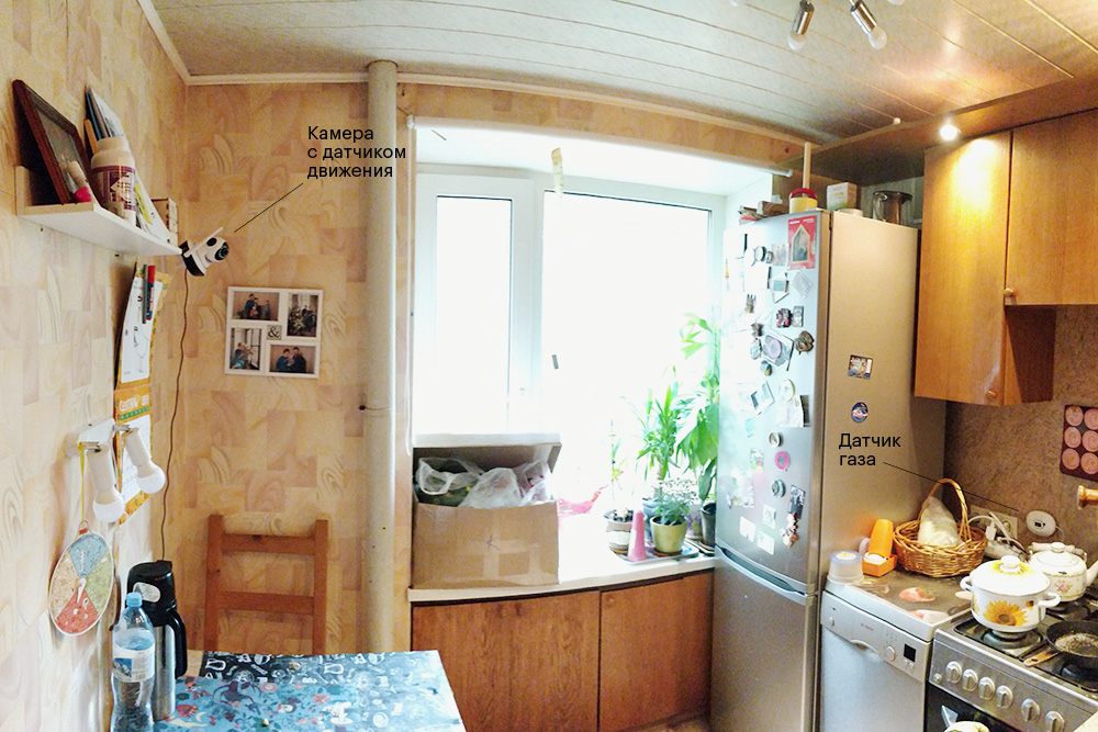 Датчик отправит уведомление на телефон, если почувствует высокую концентрацию газа  Через вайфай-камеру я могу проверять, выключил ли газ, воду и свет в кухне