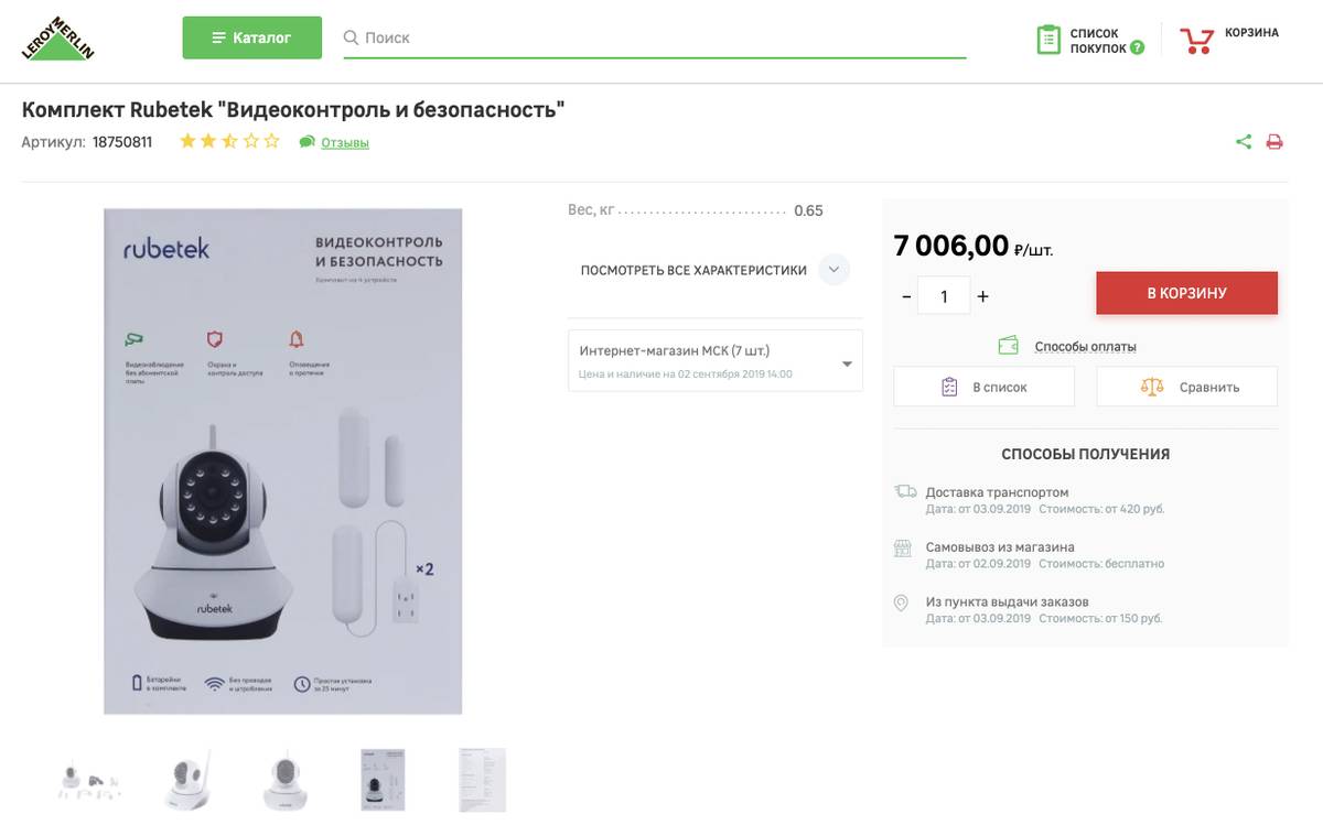 Я заказал себе готовый комплект Rubetek за 7006 Р. В него входят датчик открытия двери, протечки и камера со встроенным датчиком движения. Прямых китайских аналогов на «Алиэкспрессе» я не нашел. Устройства Rubetek проектируют в России, поэтому проблем с поддержкой нет.