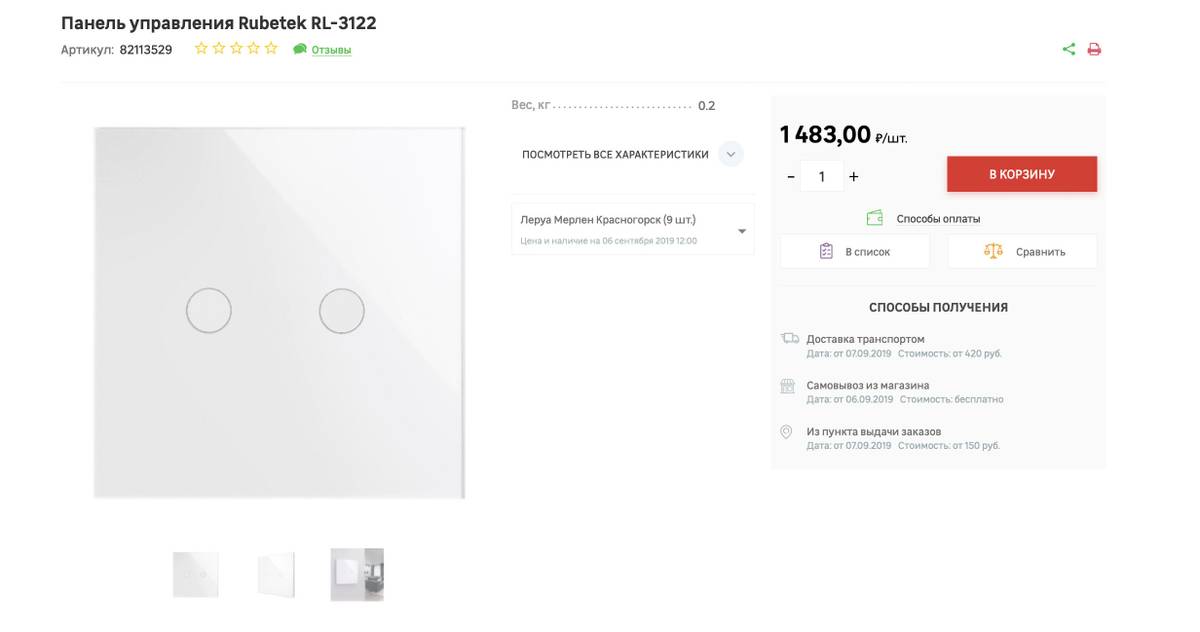 Панель для управления светом от Rubetek стоит в «Леруа Мерлен» 1483 рубля  Дополнения для российской системы Rubetek можно докупить в Китае. Это сэкономит вам деньги