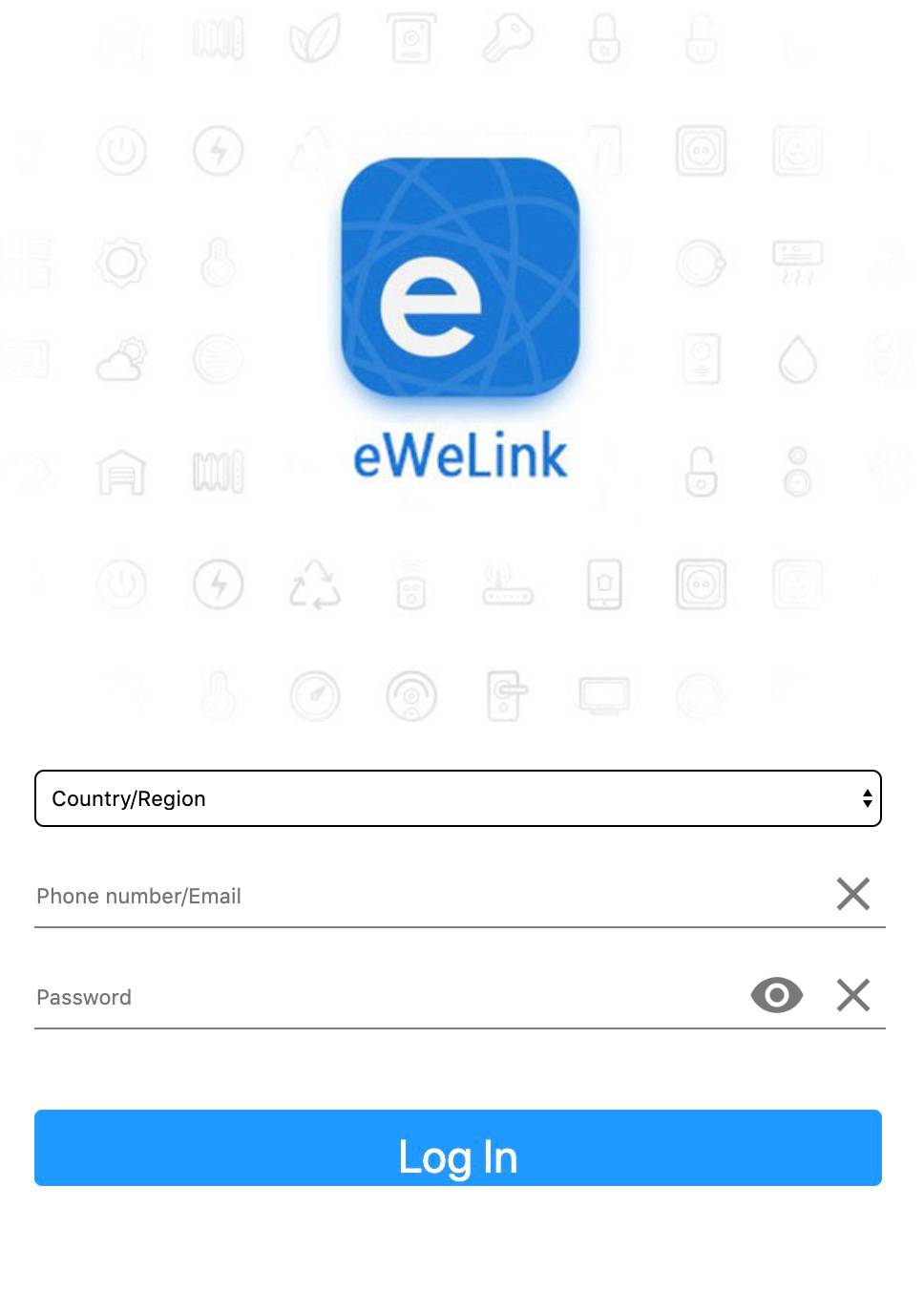 Шаг 4. Вводим логин и пароль от учетной записи eWeLink — она создается при добавлении устройств Sonoff в приложении eWeLink
