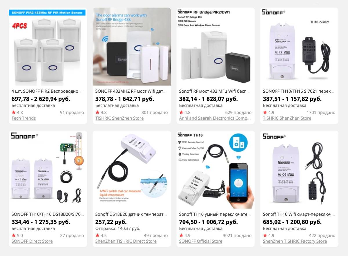 Датчики Sonoff в фирменном магазине на «Алиэкспрессе»