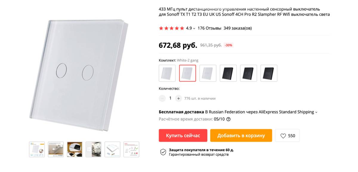 Есть и минусы. Первый минус — это цена устройств. Для сравнения, панель для управления светом от Rubetek стоит в «Леруа Мерлен» 1483 Р. Аналог на «Алиэкспрессе» — вдвое дешевле.