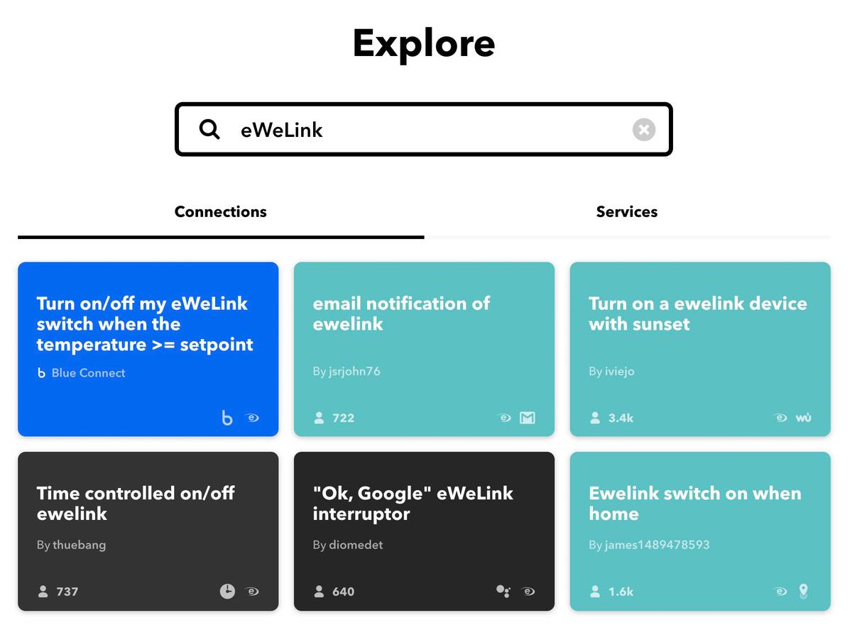 Шаг 1. В поиске IFTTT находим сценарии для eWeLink