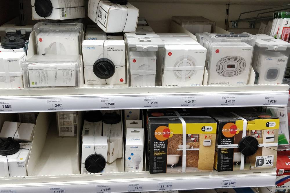 Rubetek — умный дом из России. Я выбрал этот комплект, потому что он есть в каждом «Ашане» и «Леруа». Это дает гарантию: если система не заработала или не подошла, то ее можно просто вернуть по кассовому чеку. Рассуждал так: продавцы-консультанты помогут выбрать подходящие датчики, а за поддержкой можно обратиться на горячую линию.