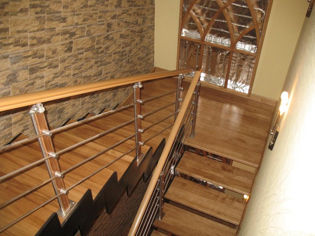 Как правило, из металла делают только несущий каркас межэтажных лестниц, на который укладывают деревянные ступени. А ограждения и перила могут быть и деревянными, и стальными.