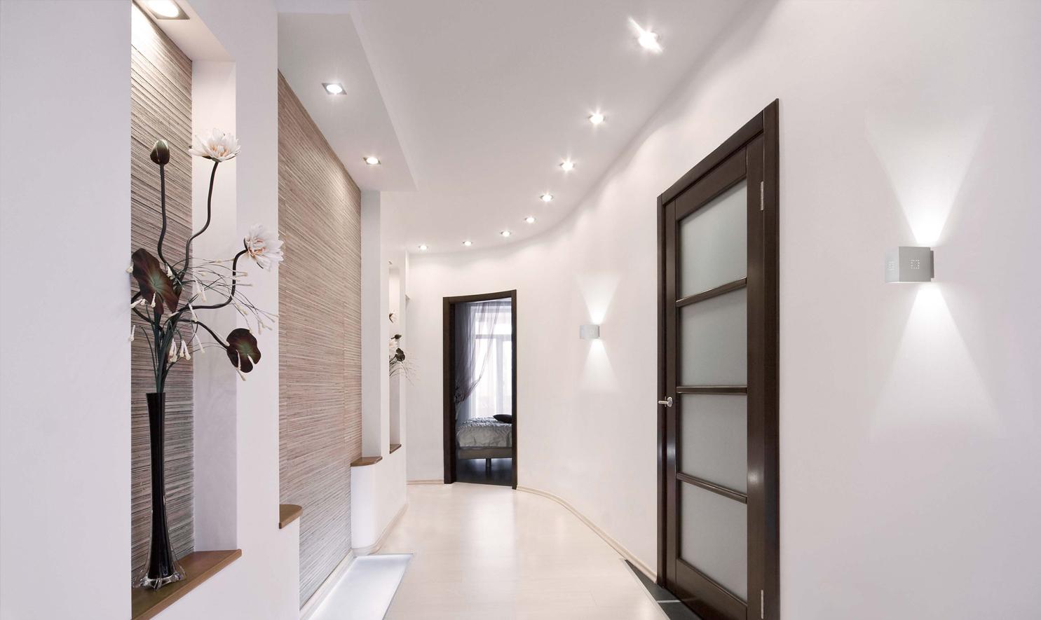 Это не просто подсветка ниши, а полноценный источник освещения в комнате. Поэтому на стадии ремонта нужно планировать, где будут находиться светильники, и не будет ли их свет раздражать. При необходимости их легко заменят бра.